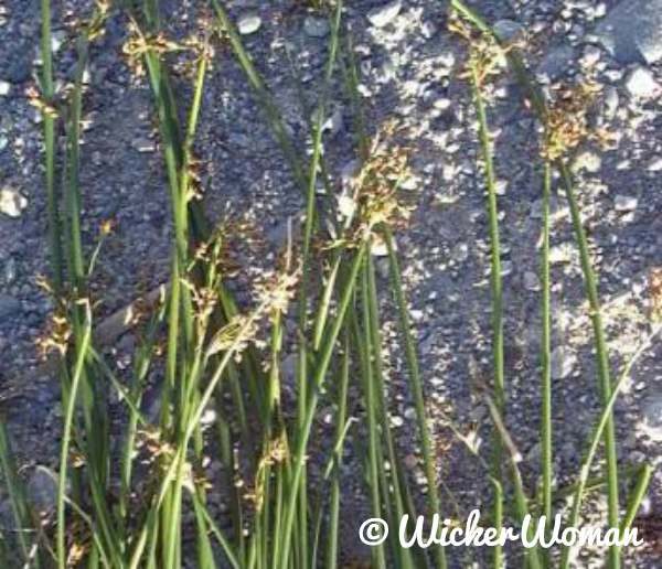 Bulrush has small florets at the tips and the shaft or stalk has no leaves. The stems are soft, pithy, and round with no sharp edges. They twist together more evenly and takes fewer of them to make the twisted rope-like strands than do cattail leaves.