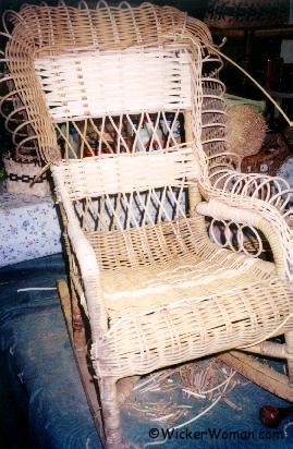 However, the rocker was an excellent quality wicker piece circa 1890s-1910. It was woven with rattan reed on a hardwood, steam-bent framework that was still in perfect shape.