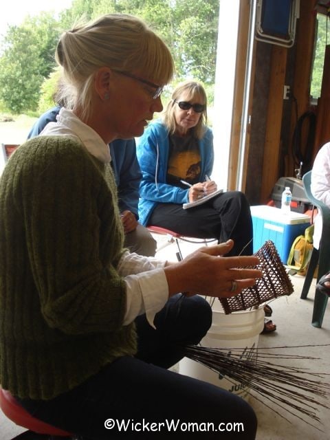 The last day of willow basketweaving with Danish instructor Anne Metta Hjornholm at Lakeshore Willows was the Burkina open style basket.